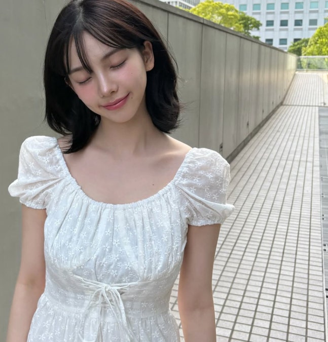 Sur les photos, elle affichait son visage démaquillé et exhibait son charme sous différents angles. Assortie à sa robe blanche une-pièce et à des chaussures babies, elle accentuait son charme mignon et innocent. Le contraste était saisissant avec son charisme habituel sur scène. Même démaquillée, elle ressemblait presque à Winter, une autre membre du groupe.